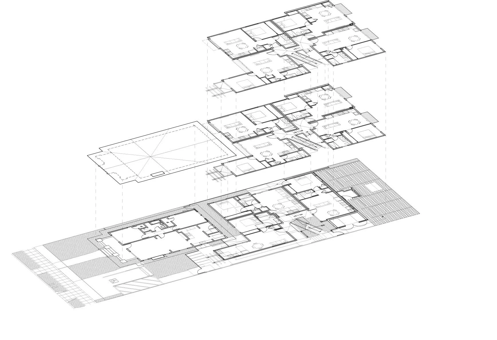 The resulting design allows for contemporary feel with sensitivity, integrating new construction behind the existing home. This approach allows for increased housing density while still honoring the neighborhood’s architectural heritage and maintaining a thoughtful blend of preservation and urban infill development.